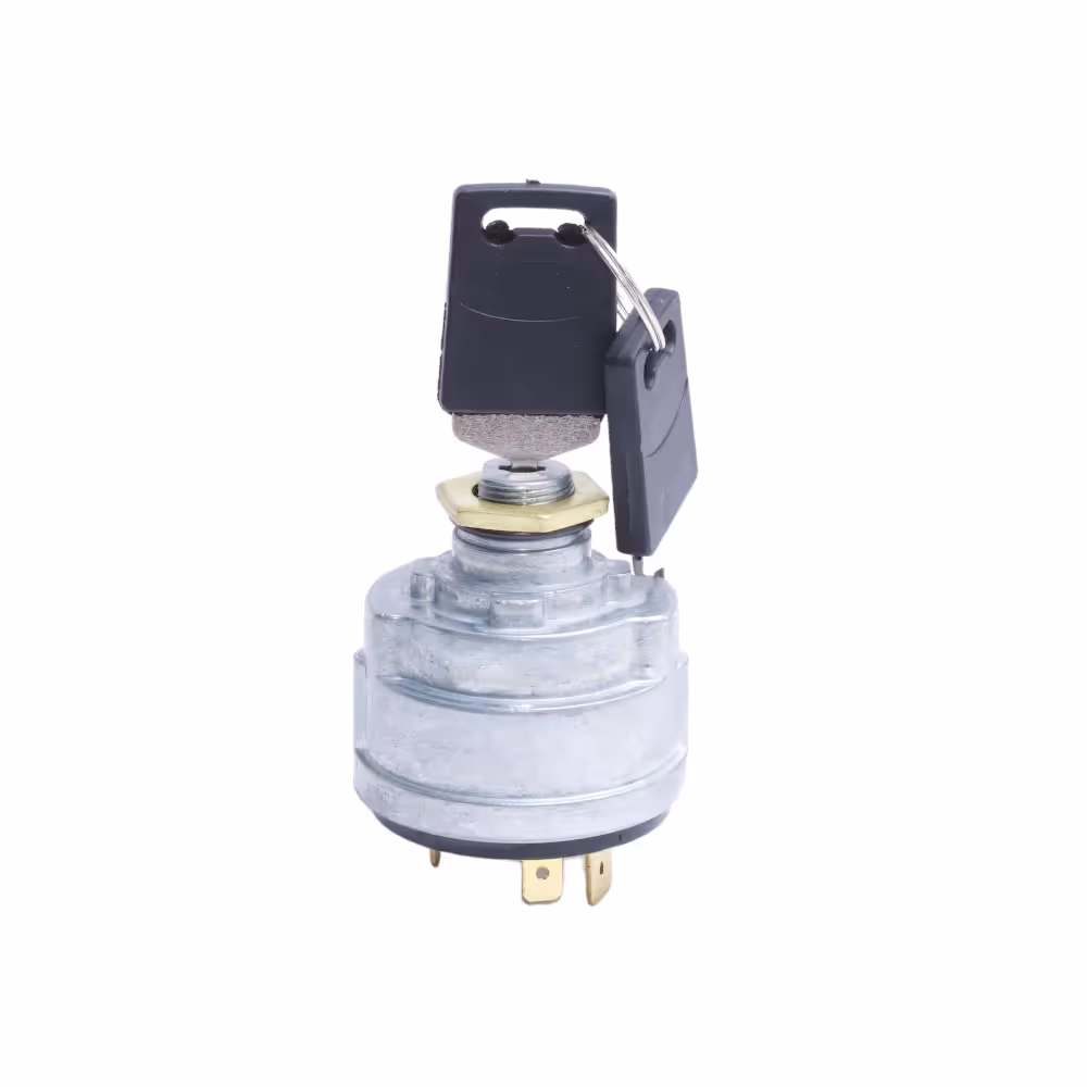 Démarrez le moteur de votre machine avec le commutateur de démarrage #82849165FP. Lorsque vous tournez la clé, le contact active le démarreur, engageant le volant du moteur pour initier la combustion. En position « marche », il contrôle également l'alimentation électrique du système électrique de la machine, permettant à l'électricité de circuler de la batterie vers divers composants, notamment les feux, les jauges et autres accessoires.