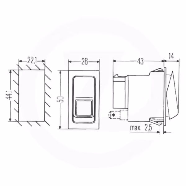 - Largeur encastrement : 22.1 mm