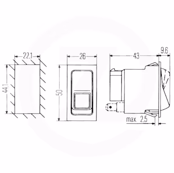 - Largeur encastrement : 22.1 mm