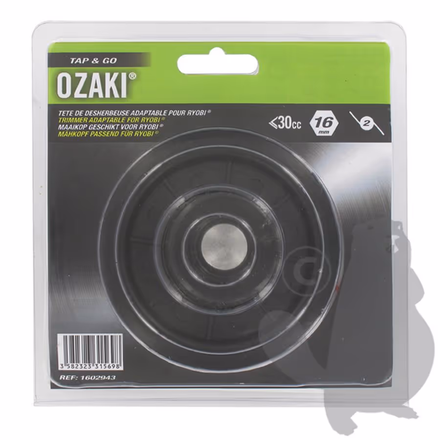Tête fil nylon TAP-N-GO 2 fils pour désherbeuse RYOBI, hexagone de 16 mm avec vis de pas US 18G5/16" D. Remplace origine 153577 et 180897. S'utilise sur RCT450, RCT2800, RCTA3100 et autres modèles, ainsi que pour accessoire RYOBI CS720R - Livrée avec fil de diamètre: 2,0 mmTête 2 fils TAP-N-GO. Hexagone de 16 mm avec vis de 18G5/16''