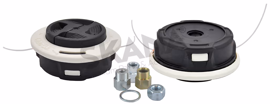 Tête fils nylon à deux fils Ø 115 mm adaptable DOLMAR - ECHO - HUSQVARNA - STIHL (modèle C26,2) et autres marques. Inclus 4 adaptateurs (M8 x 1,25 LHF, M10 x 1,00 LHF, M10 x 1,25 LHF, M12 x 1,50 LHF). Capacité de chargement du fil: Ø 2,4 mm (8 mètres); 2,7 mm (7 mètres). Remplace origine 4002-710-2169, 40027102169.Tête fil nylon adaptable. Fournie avec 4 adaptateurs (M8x1,25, M10 x 1,0 LHF, M10 x 1,25 LHF, M12 x 1,50 LHF).