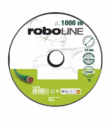 Câble d'installation périphérique pour robots. Composé de 19 fils conducteurs en cuivre étamé de section 0,93 mm². ø ext. : 2,5 mm. Longueur : 1000 m.Câble d'installation pour tondeuses robots.