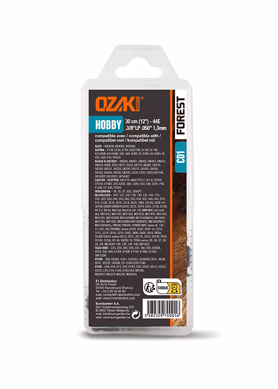 Chaîne de tronçonneuse OZAKI sous coque semi carrée: 3/8"LP .050 (1,3mm) 44 entraîneurs ( E44 ).