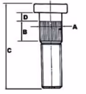 D : distance entre tête et canelures 13 mm