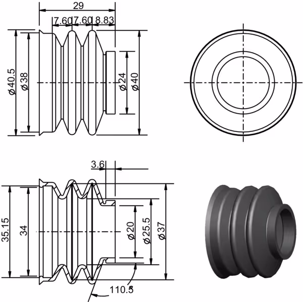 - Manchette universelle en caoutchouc utilisée comme soufflet de levier de vitesse ou passage sur le plancher de cabine