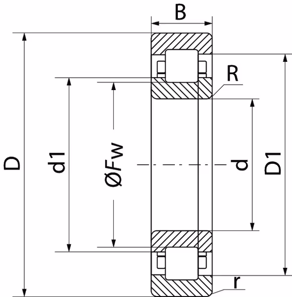 Roulement à rouleaux cylindriques à une rangée, type NUP