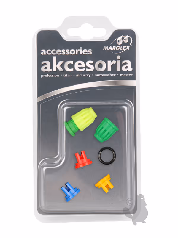 Jeu de 5 buses et 1 joint torique pour lances de pulvérisation MAROLEX et la majorité des autres marques. Adaptable sur modèles TITAN, PROFESSION et MX20. Composé de: 2 buses pour pulvérisation circulaire avec Ø 1mm (vert), 1,5mm (jaune) et 3 buses pour pulvérisation à 110° avec Ø 2mm (jaune), 3mm (bleu) et 4mm (rouge).Jeu de 5 buses et 1 joint torique pour lances de pulvérisation MAROLEX et la majorité des autres marques. Adaptable sur modèles TITAN, PROFESSION et MX20. 2 buses pour pulvérisation circulaire avec Ø 1mm (vert) et 1,5mm (jaune). 3 buses pour pulvérisation à 110° avec Ø 2mm (jaune), 3mm (bleu) et 4mm (rouge).