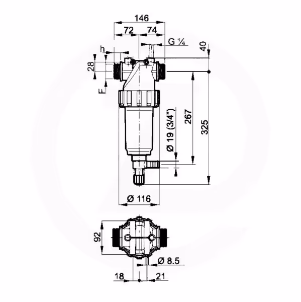 - h (mm) : 18,5