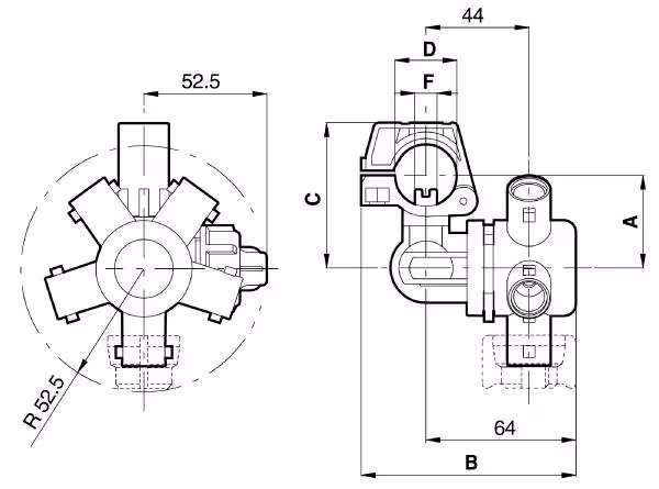 - Ø de tuyau D : 1/2'' BSP (20.9 mm)