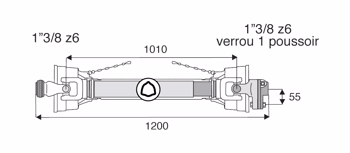 - Mâchoire côté tracteur : 1'' 3/8, 6 cannelures