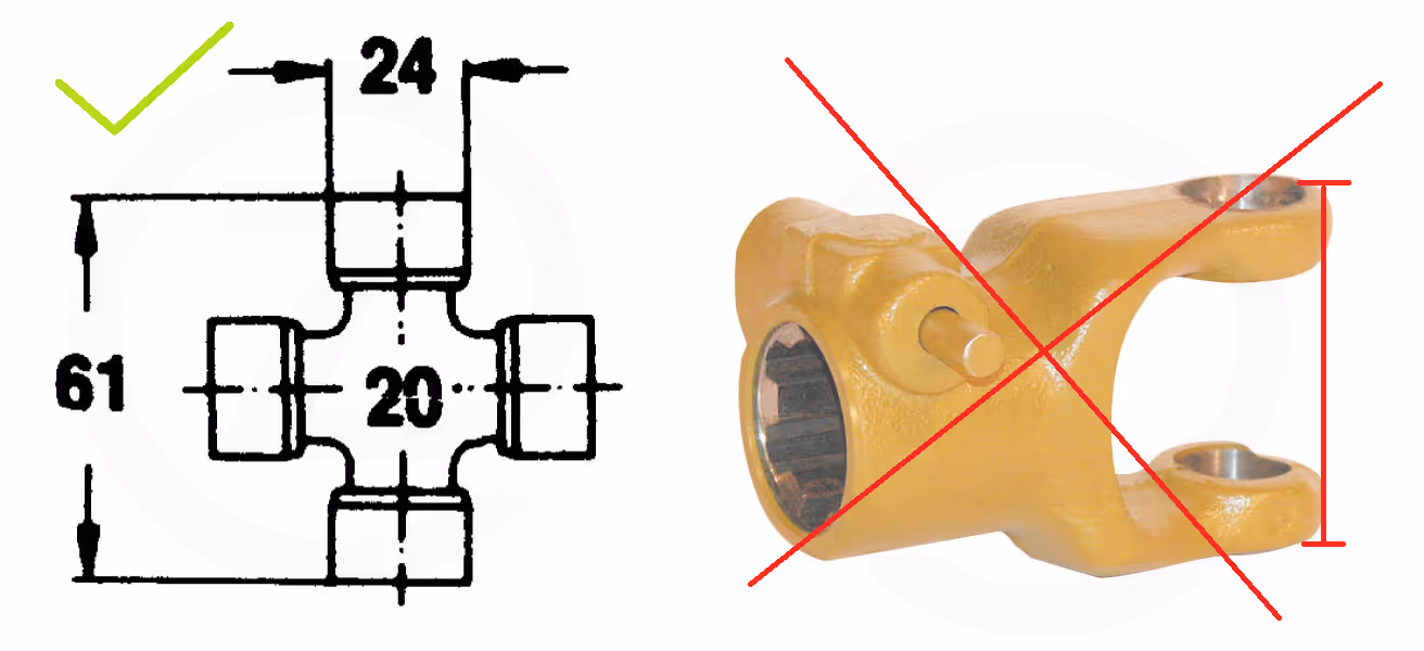 Caractéristiques: - Graissage effectué au moyen du graisseur monté au milieu du croisillon - Joint en polyester noir pour la douille de roulement - Intervalle de graissage : entre 50 et 100 heures et selon les conditions de fonctionnement Se compose de: - Croisillon - Circlips - Graisseur Informations techniques: - Joint standard « C »