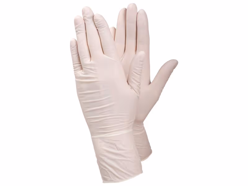 Gant à usage unique, 0,10 mm latex, non poudré, Cat. III, blanc, approuvé pour la manipulation de produits alimentaires, à lexception des aliments gras, pour le travail de précision