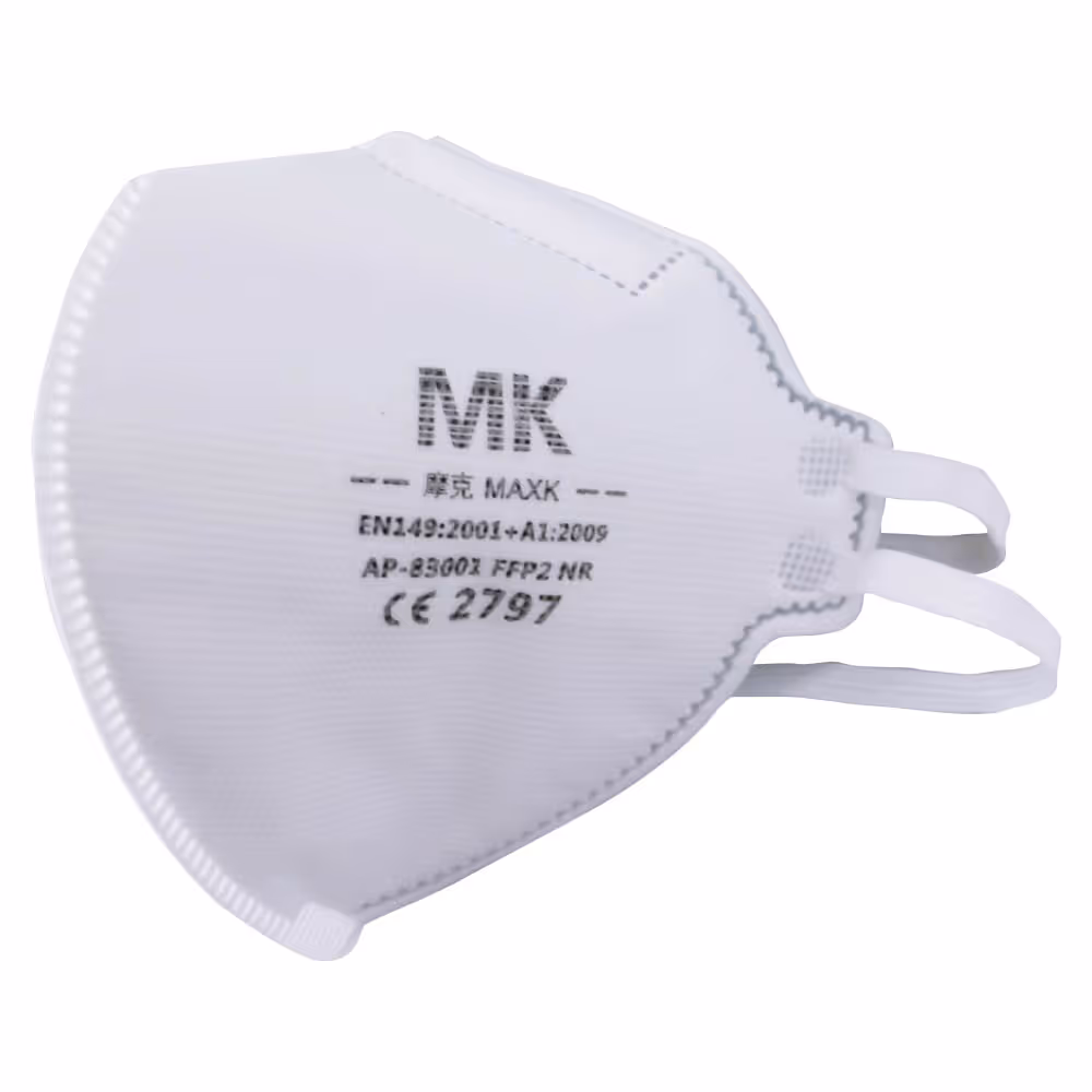 MASQUE DE PROTECTION AUTO-FILTRANT ANTIBUÉE Caractéristiques techniques: Type (selon EN 149:2001+A1:2009): FFP2 NR Taux de pénétration: ? 11% Perméabilité du matériau filtrant pour laérosol de chlorure de sodium et lhuile de paraffine à un débit dair de 95 l/min: ? 6% Résistance respiratoire à de linspiration à un débit dair de 30 l/min: ? 0,70 mbar Résistance respiratoire à de linspiration à un débit dair de 95 l/min: ? 2,4 mbar Résistance respiratoire à lexpiration à un débit dair de 160 l/min: ? 3 mbar Teneur en dioxyde de carbone (CO2) en air inhalé: ? 1% Temps dutilisation max.: 8 h - Filtre 5 couches: 1 couche tissu non tissé + 2 couches tissu fondu-soufflé + 1 couche coton air chaud + 1 couche tissu non tissé - Arc en aluminium pour une adaptation facile au nez - Conception arquée pour une respiration plus douce - 2 bandes élastiques en caoutchouc qui sajustent derrière la tête Conforme à la norme EN 149:2001+A1:2009. Conforme au règlement UE 2016/425.