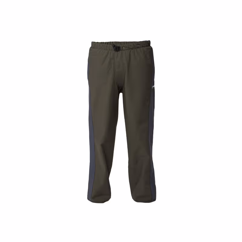 Ceinture élastiquée réglable à verrouillage antidérapant. Fermeture sécurisée par bouton pression aux chevilles pour passer par-dessus la botte. Deux poches latérales doublées. Entrejambe renforcé pour une liberté de mouvement et une résistance maximales. Talon dégagé empêchant la jambe du pantalon de se coincer sous la botte.